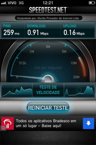 Teste de velocidade da Vivo 3G